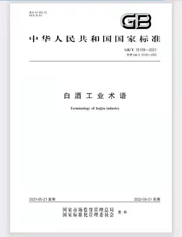《中国酒业》记者注意到,《白酒工业术语》推荐性国家标准在1994年首次发布,2008年第一次修订并实施至今。新标准将于2022年6月起正式实施。